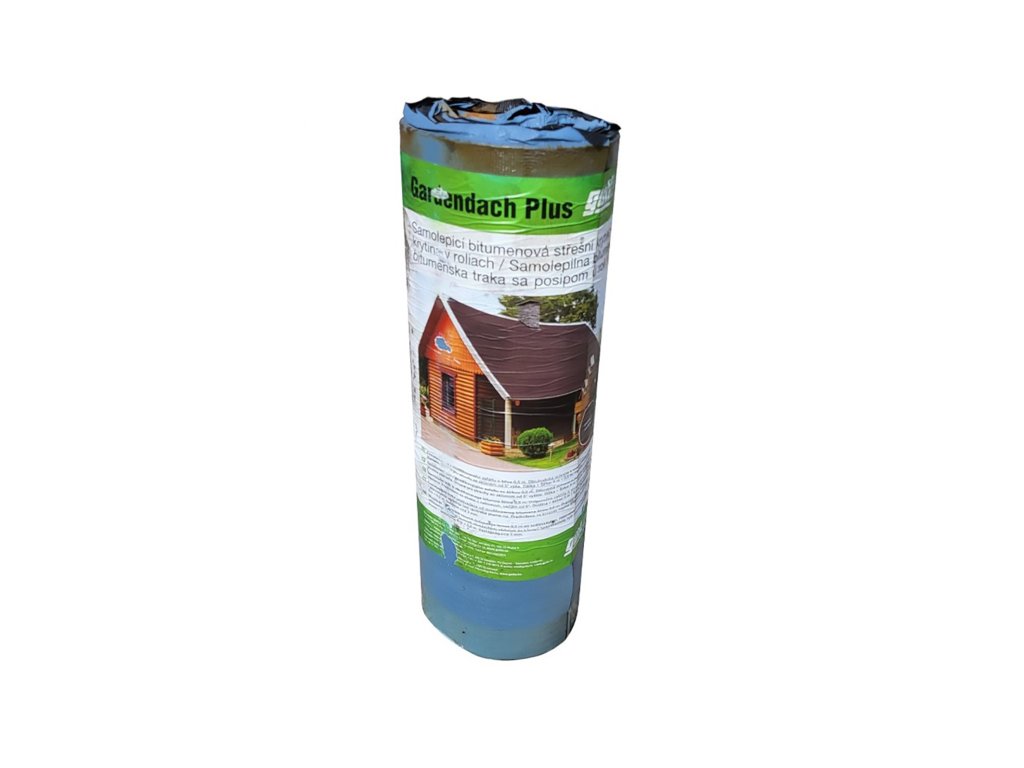 Asfaltový pás GARDENDACH PLUS je určen jako horní vrstva pro střešní konstrukce a stavební objekty typu pergol, altánů, přístřešků apod. Jedná se o samolepící hydroizolační pás z modifikovaného asfaltu doplněný vložkou z pevného polyesterového rouna a speciální povrchovou úpravou s barevným hrubozrnným posypem. Tento typ asfaltového pásu lze zpracovávat od teploty -15 °C a je určen pro střechy se sklonem 5° a výše.