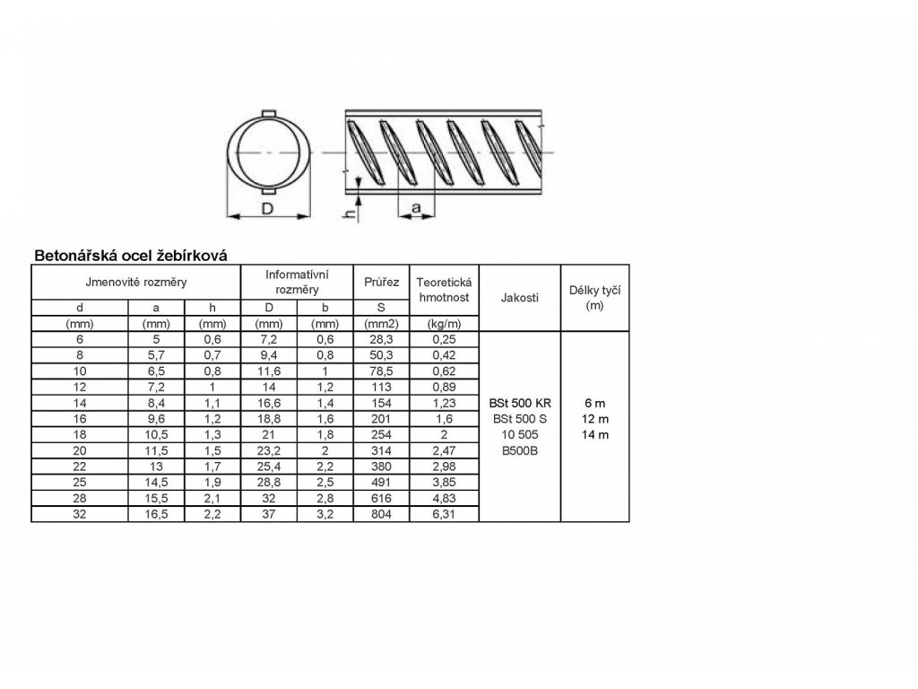 Betonářská roxorová tyč 6 mm s délkou 6 m B500B.