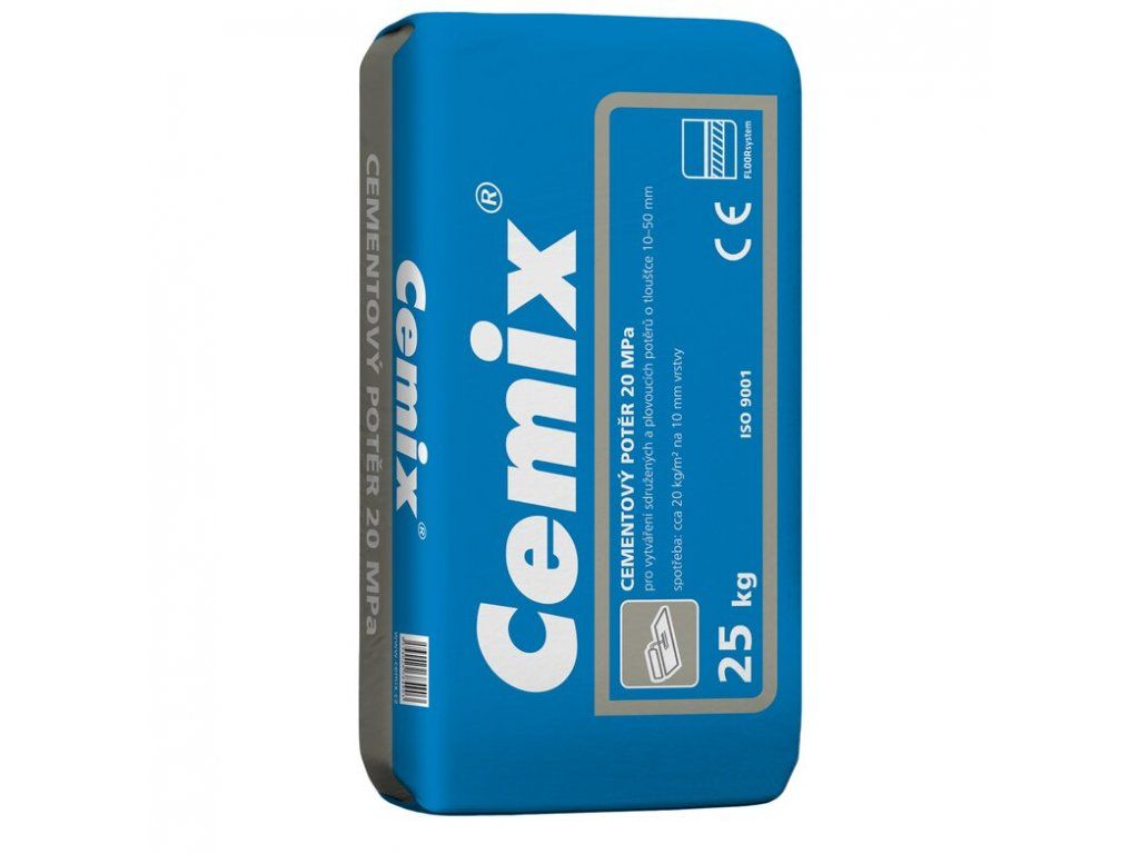 Cementový potěr pro vnitřní stavební konstrukce jemný, zrnitost 1,2 mm 010 j Cemix 25 kg
