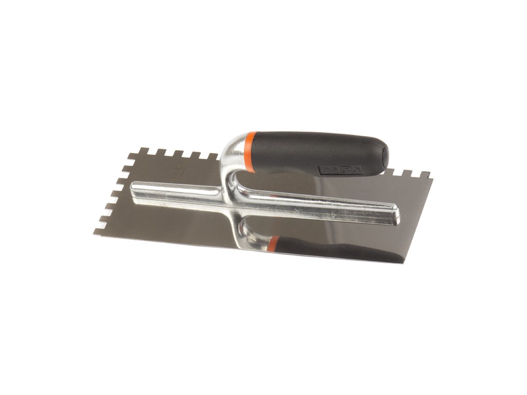 Nerezové hladítko BECCO, které obsahuje praktické zuby, je určeno k nanášení lepidel, omítek a štuků. Po celé své délce je plně vyztuženo. Součástí hladítka je pohodlná rukojeť potažená plastem.