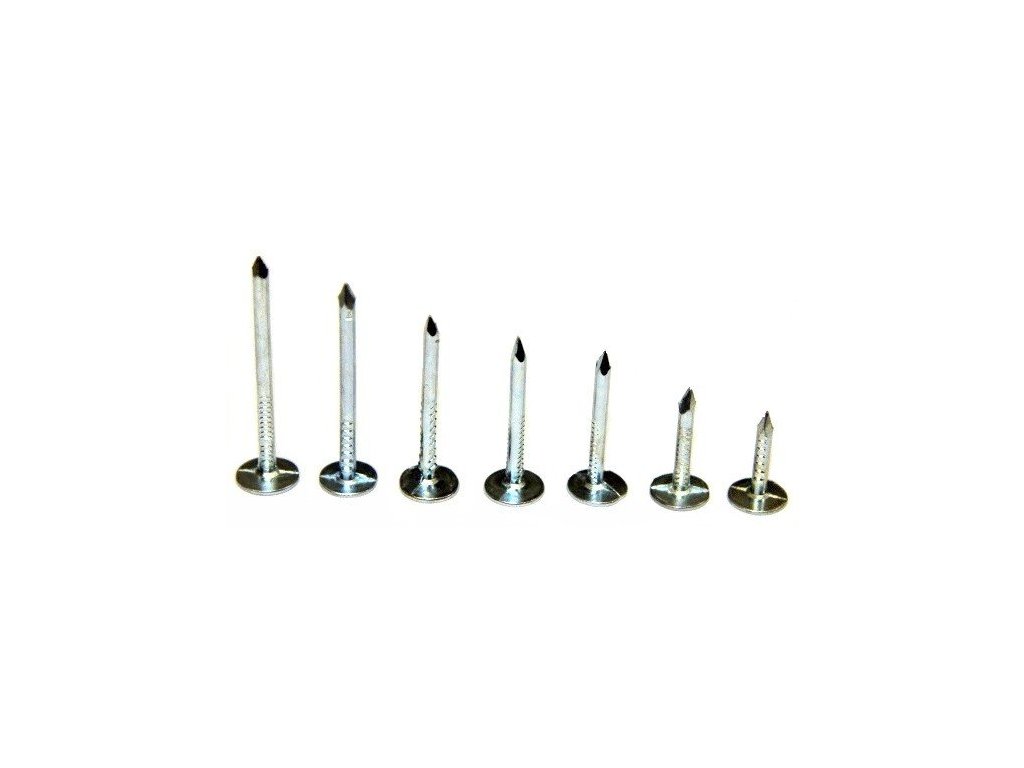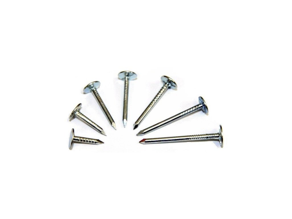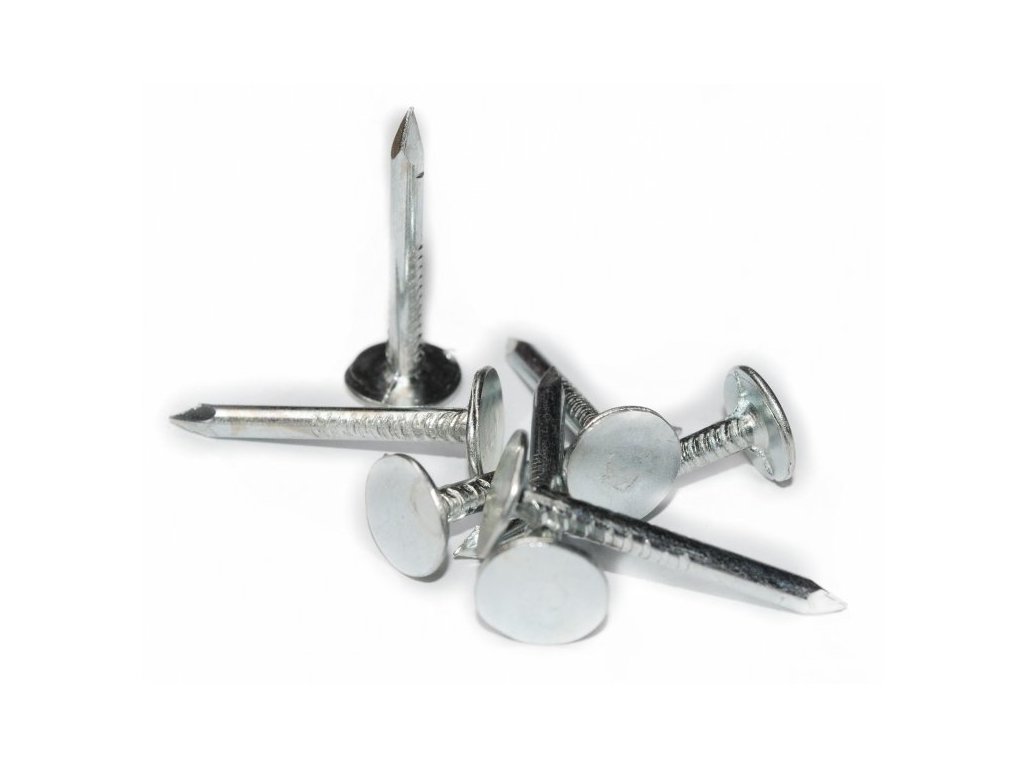 Hřeby s velkou plochou hlavou pro mechanické kotvení lepenek a asfaltových šindelů.