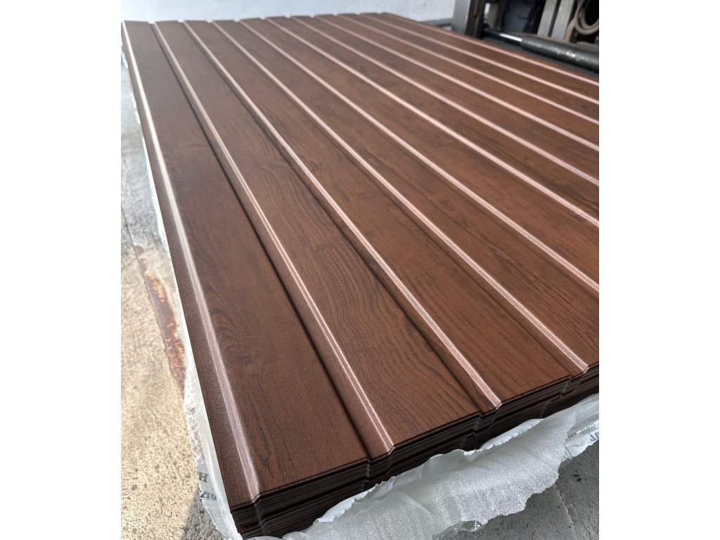 Plechový fasádní a plotový panel HORNVAL TRAPÉZ T7 0,5 - 118 x 200 cm TMAVÝ DUB (jednostranný)
