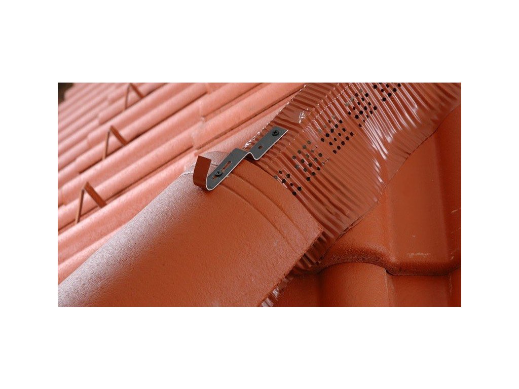 Příchytky hřebenáčů UNI jsou vyrobeny z vysoce kvalitního hliníku potaženého polyesterovou barvou a slouží k upevnění střešních hřebenáčů k hřebenové nebo nárožní lati, především pak k hřebenům a nárožím šikmých střech při tzv. suchém provedení odvětrávaného hřebene. Zajišťují pevné a spolehlivé upevnění hřebenáčů na hřebeni a nároží. Tyto příchytky jsou univerzálně použitelné pro veškeré druhy betonových krytin.