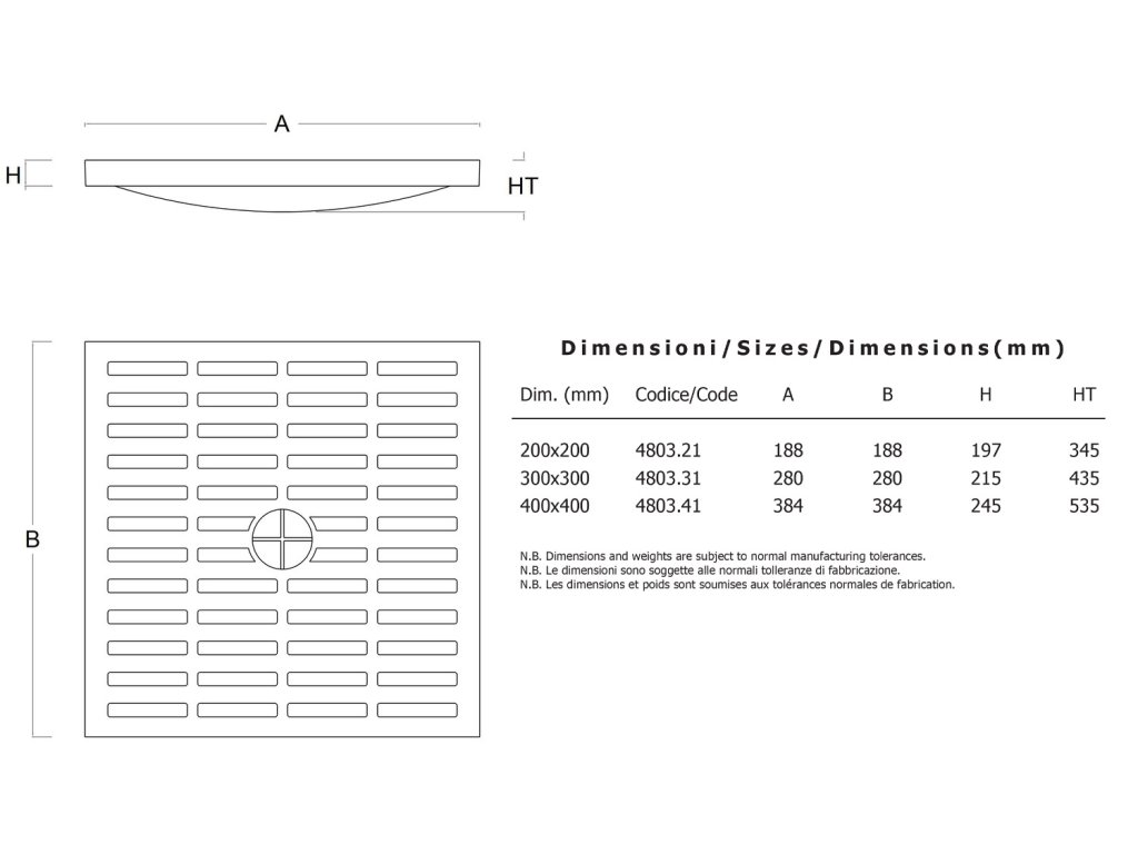 - jmenovitý rozměr roštu: 300 x 300 mm