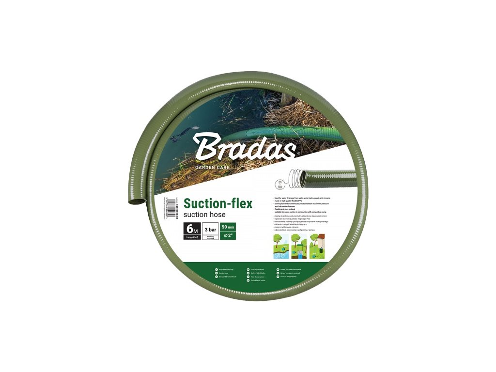 Technická sací hadice SUCTION-FLEX je vyrobena z vysoce kvalitního měkčeného PVC a po celém svém obvodu obsahuje vyztuž pomocí ocelové spirály pro udržení maximálního tlaku a plných sacích vlastností. Tato hadice se používá pro odběr vody ze studní, nádrží, rybníků i potoků a je rovněž vhodná pro použití ve spojení s čerpadlem.