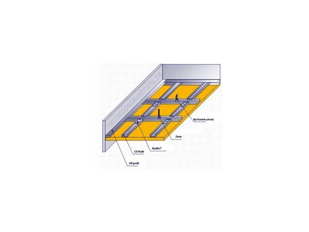 Přímý závěs je určený k přímé montáži CD profilů nebo dřevěných latí na stropní konstrukci nebo stěny. Na sádrokartonové konstrukce se stavěcími otvory.